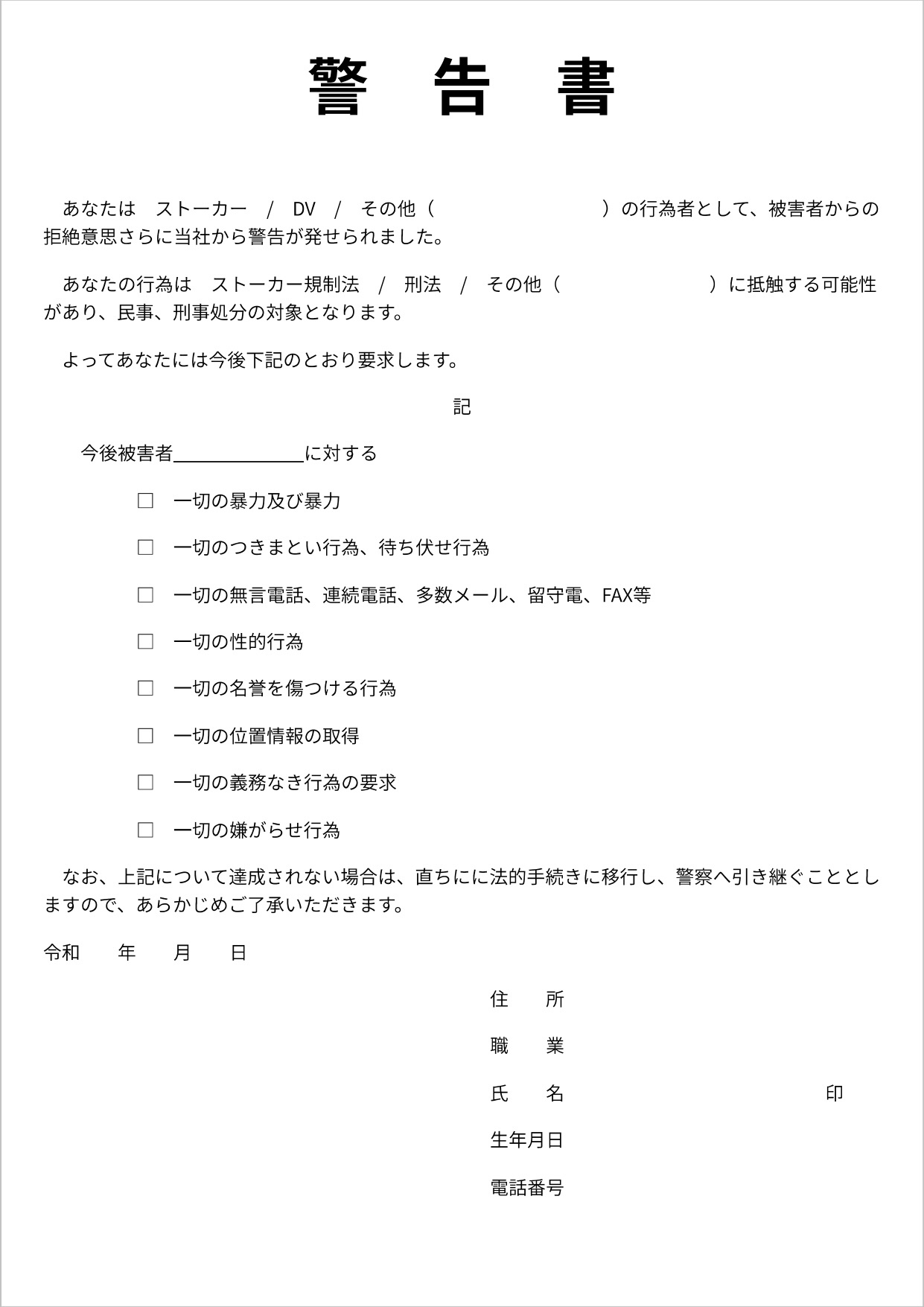 今後の対応を視野に入れ、警告書への署名(サイン)を執り行います。