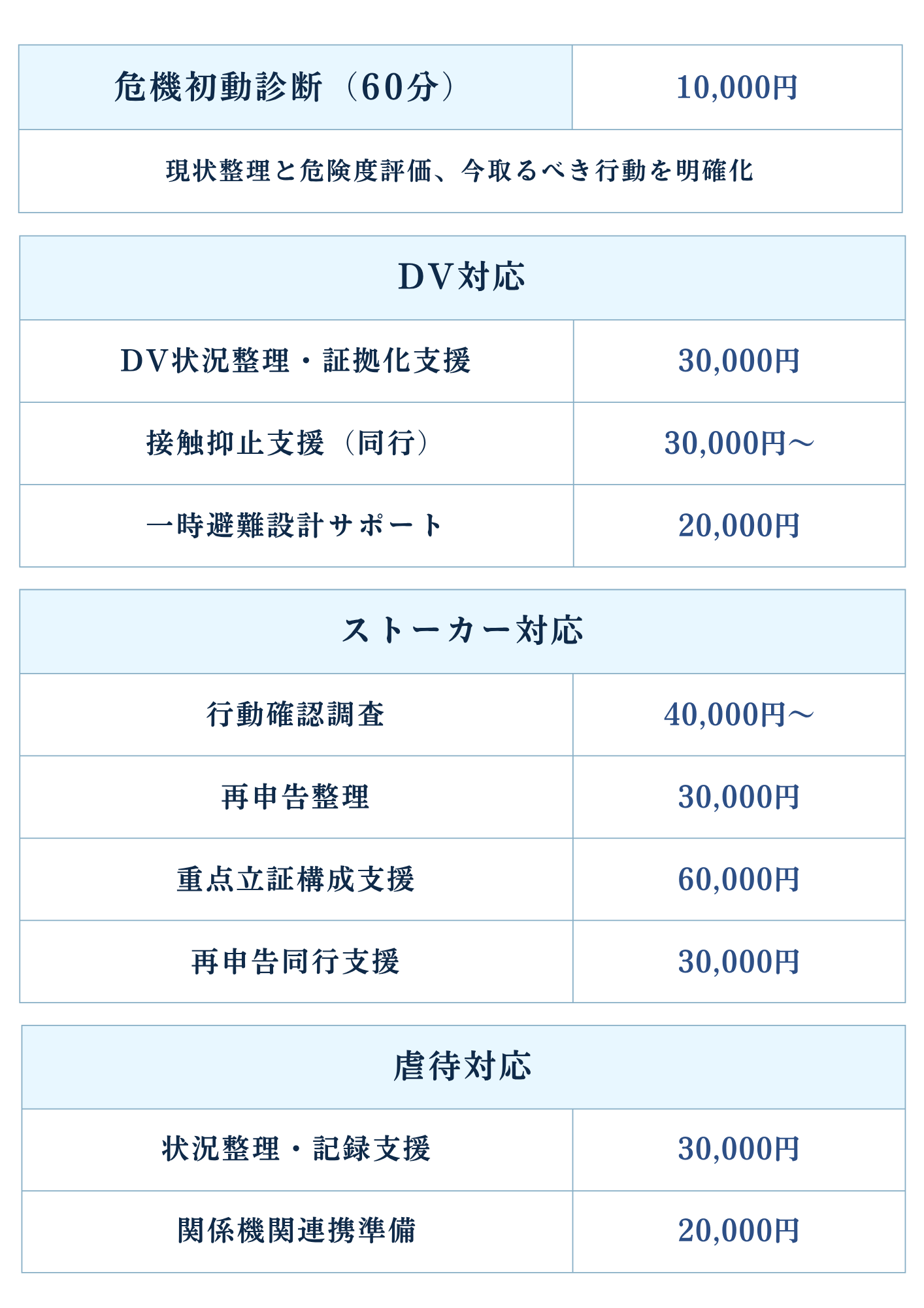 | 相談(30分) | 5,000~10,000円 |