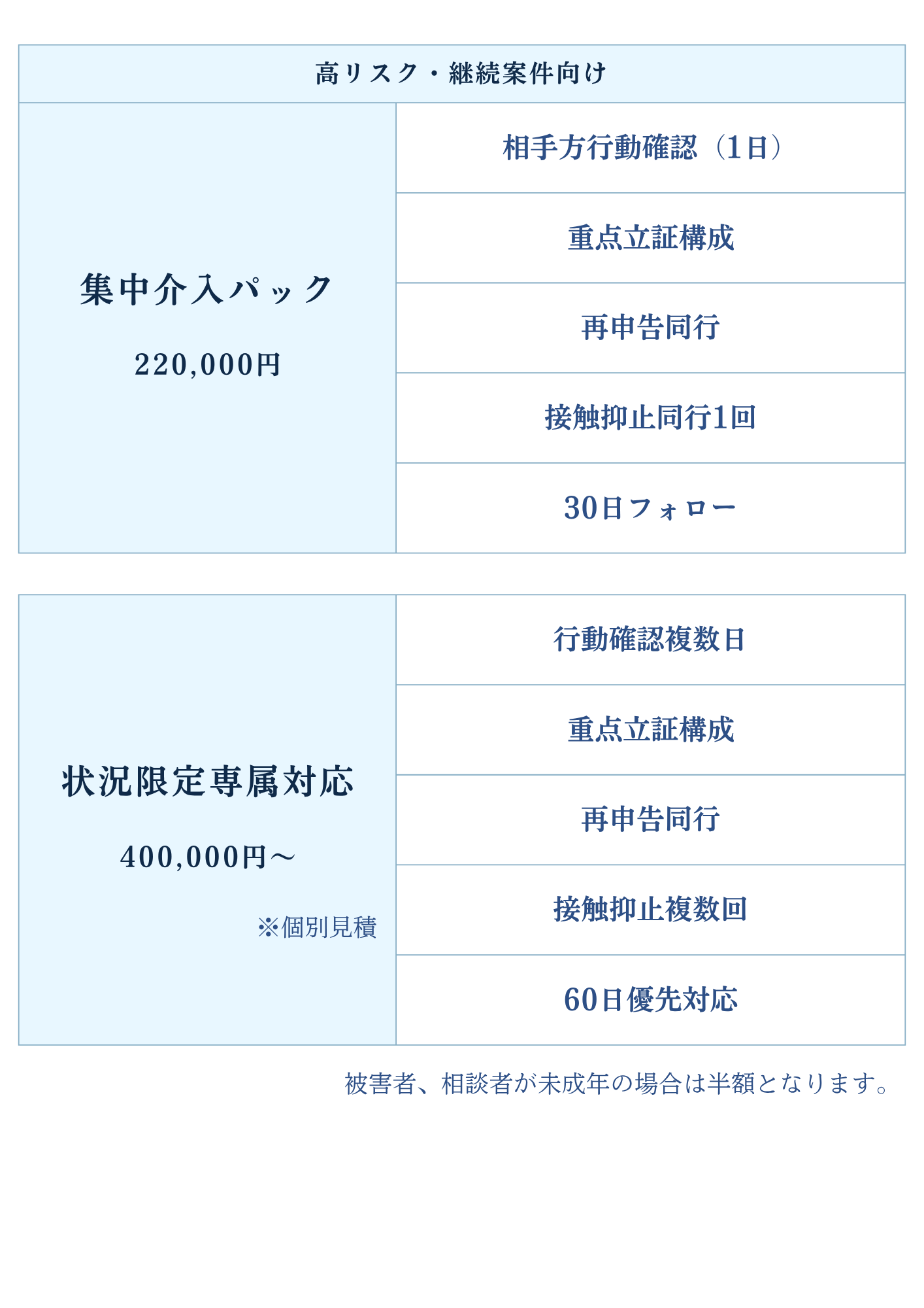 | ストーカー調査 | 150,000~800,000円 |